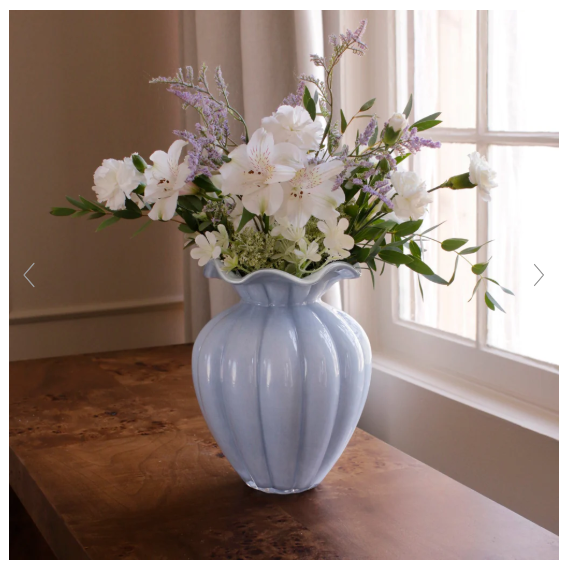 Bring a pop of serene color to the table. The GLASS Vento Large Vase in periwinkle offers a cool blue tone with a sleek, sculptural shape—ideal for fresh blooms, branches, or as a centerpiece.